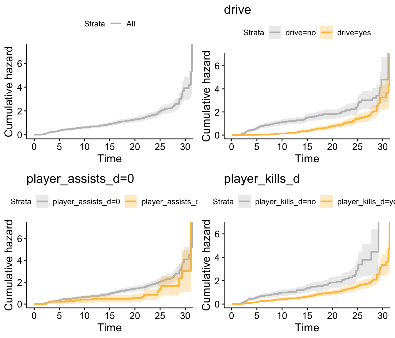## player_dist + drive, data = pubg_tpp1, x = T, method = "breslow")