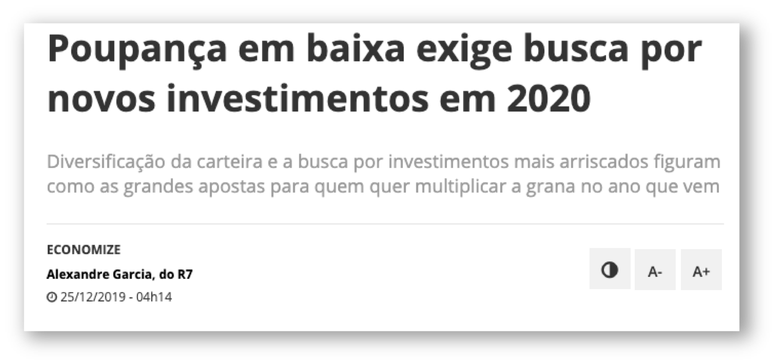 Fonte: https://noticias.r7.com/economia/economize/poupanca-em-baixa-exige-busca-por-novos-investimentos-em-2020-25122019