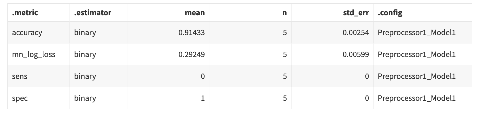mutate(collect_metrics(null_rs), wflow_id = "default", model = "null_model") %>%