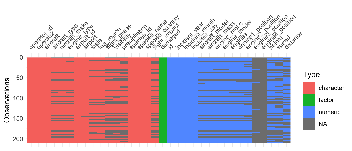 Portanto, nosso objetivo de modelagem será prever se uma colisão com animais selvagens resultou em danos a aeronave.